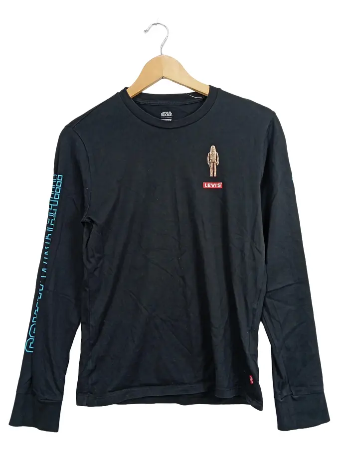 Star Wars Langarmshirt Herren XS 44 Schwarz Chewbacca Baumwolle Logo