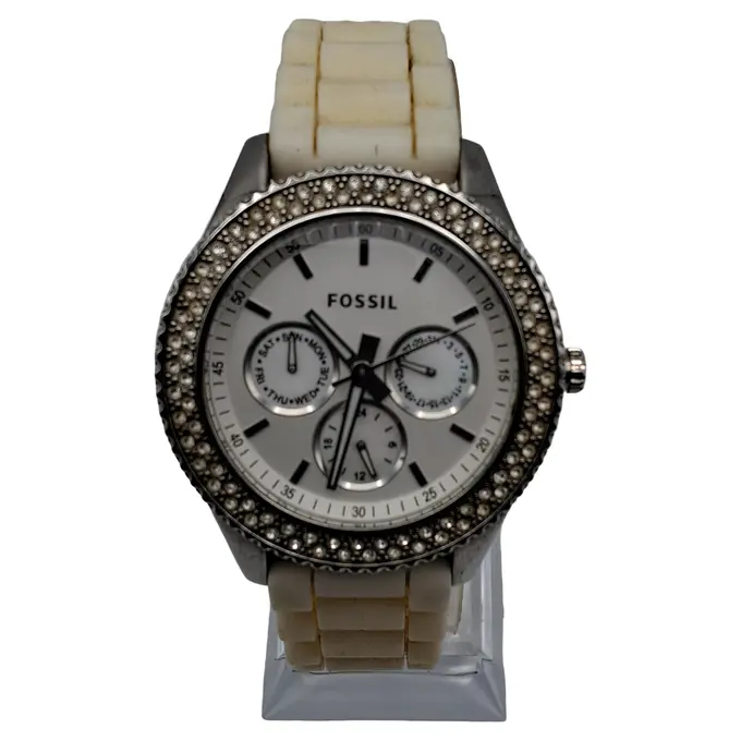 Stella Damenuhr Beige Silikon Armband Strass Chronograph Elegant
