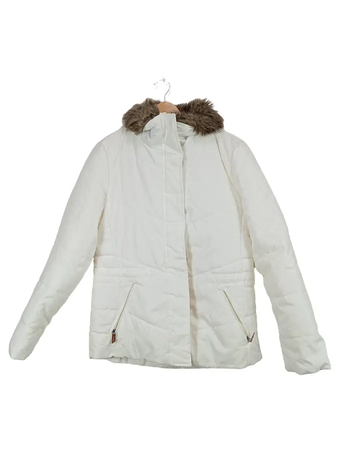 Steppjacke Damen Gr. M weiß Kunstpelzkragen Winterjacke