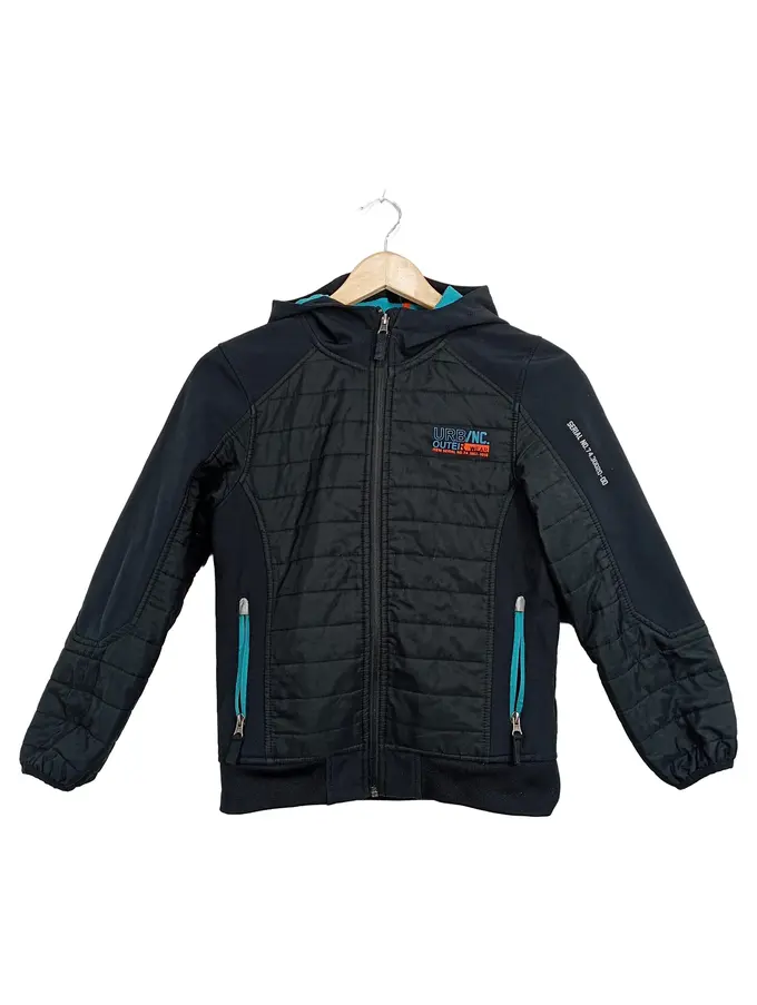 Steppjacke Kinder Gr. 146 Schwarz Kapuze Outdoor Jacke