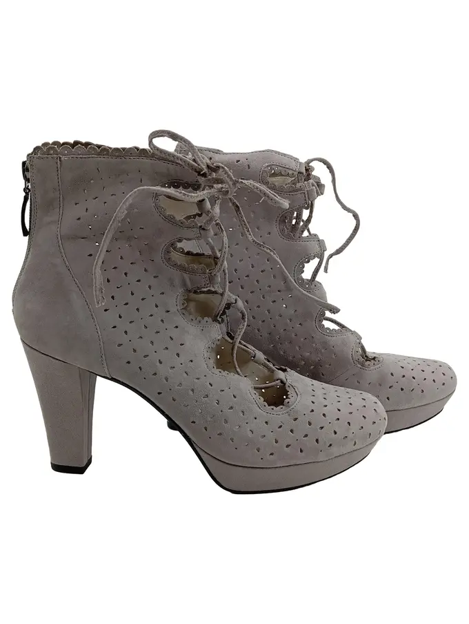 Stiefeletten Damen Gr. 39 Grau Leder Lochmuster Schnürung
