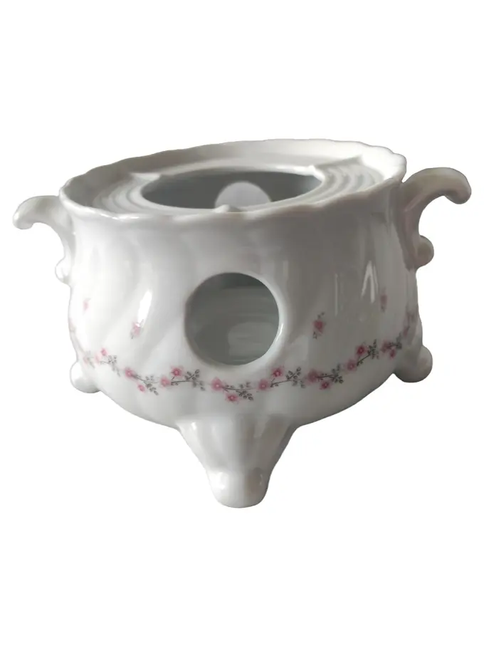 Stövchen Teewärmer Porzellan Weiß Blumenmuster Klassisch