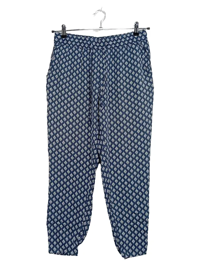 Stoffhose Damen Gr. 38 Blau Muster Viskose Freizeithose