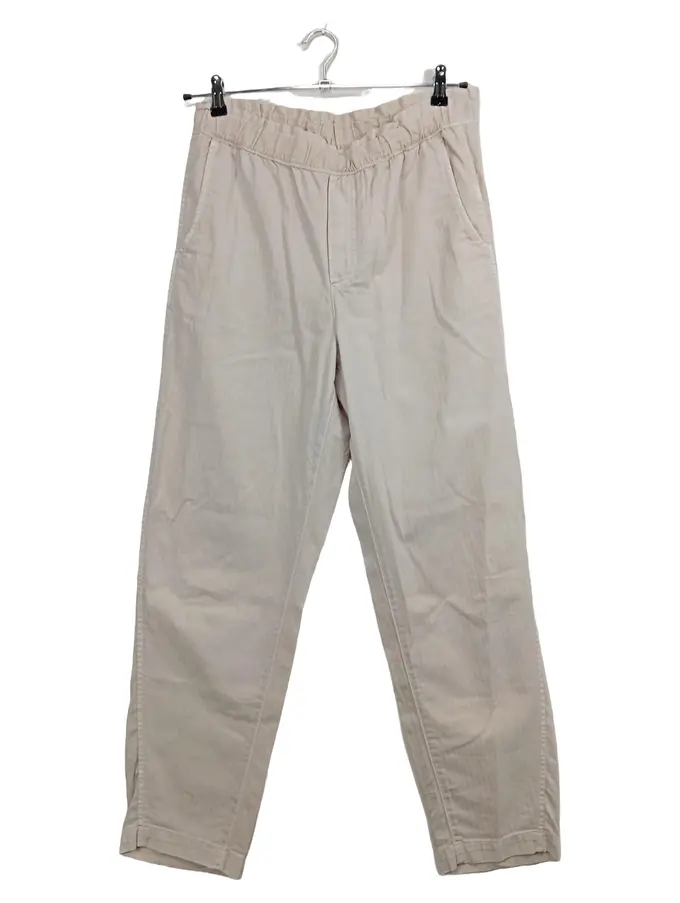 Stoffhose Damen Gr. 40 Beige Baumwolle Casual Elastikbund