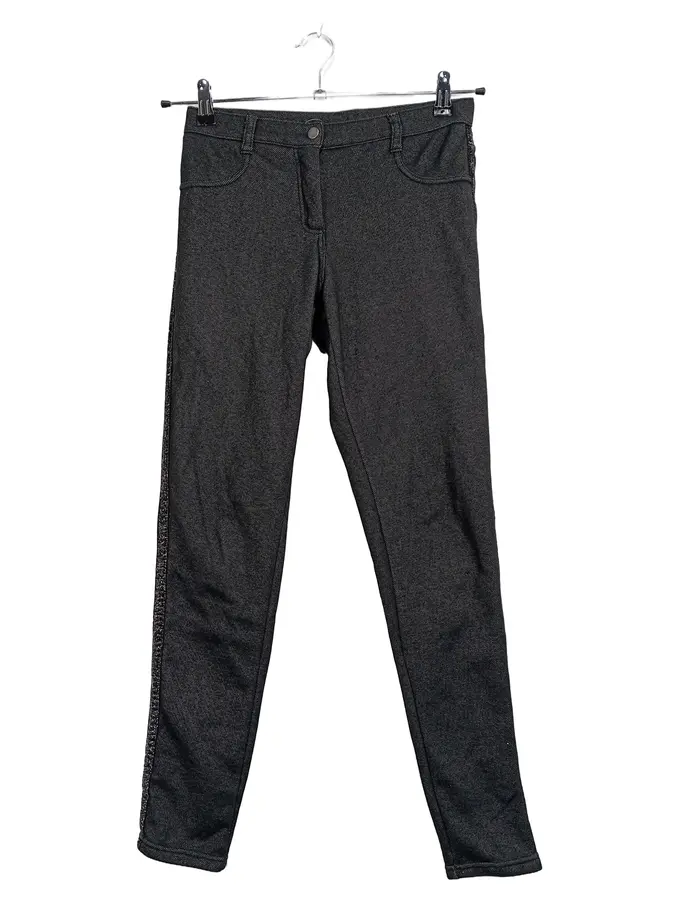 Stoffhose Mädchen Gr. 164 Grau Skinny Glitzerstreifen