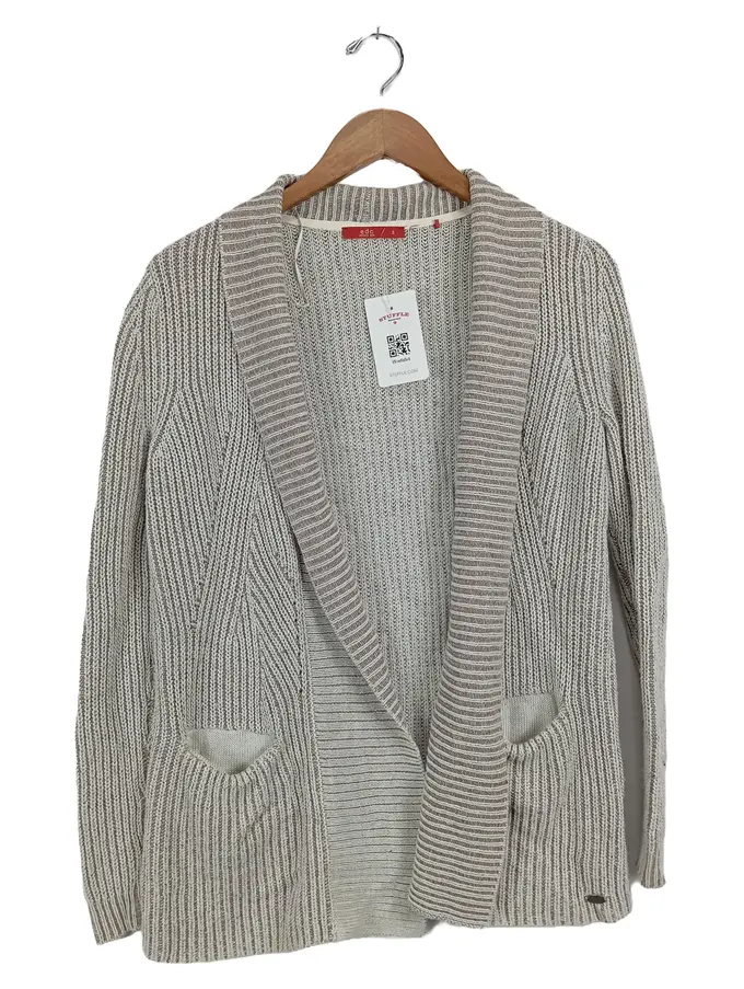 Strickjacke Damen Beige Gr. 36/S Casual Rippstrick Meliert