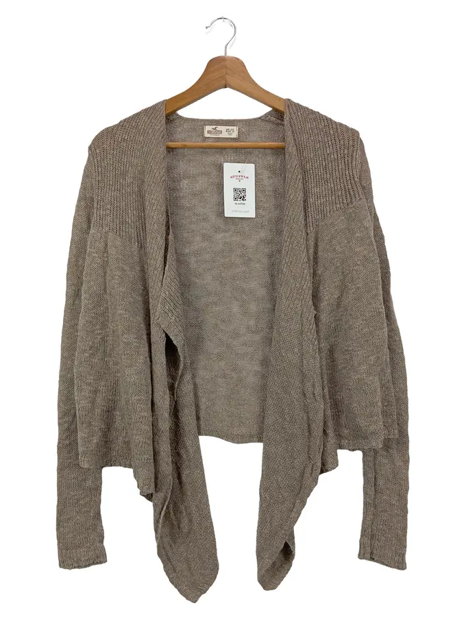 Strickjacke Damen Braun Gr. S/36 Casual Bohemian Vintage Rippstrick
