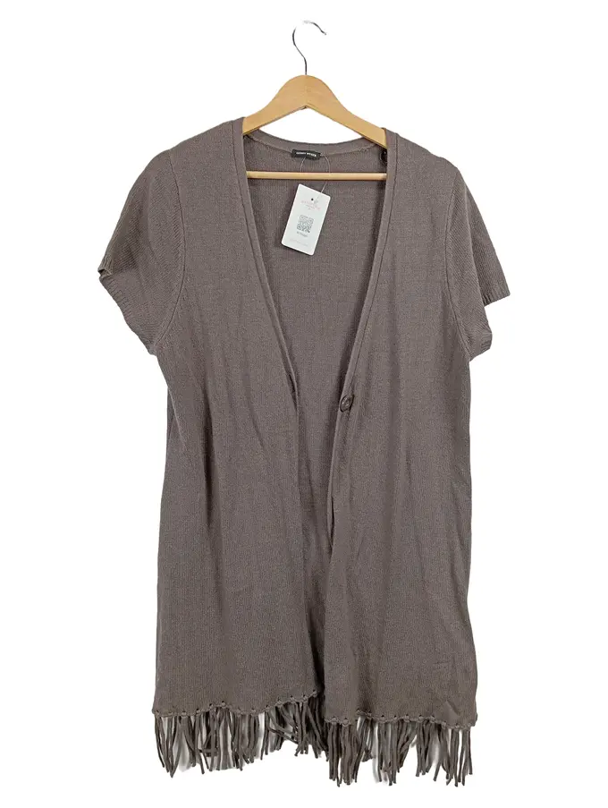Strickjacke Damen Braun Strukturmuster Fransen Kurzarm Gr. 44