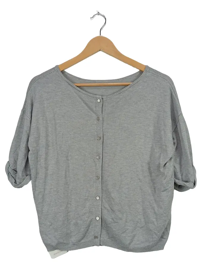 Strickjacke Damen Gr. 32/34 XS Grau Kurzarm Cardigan