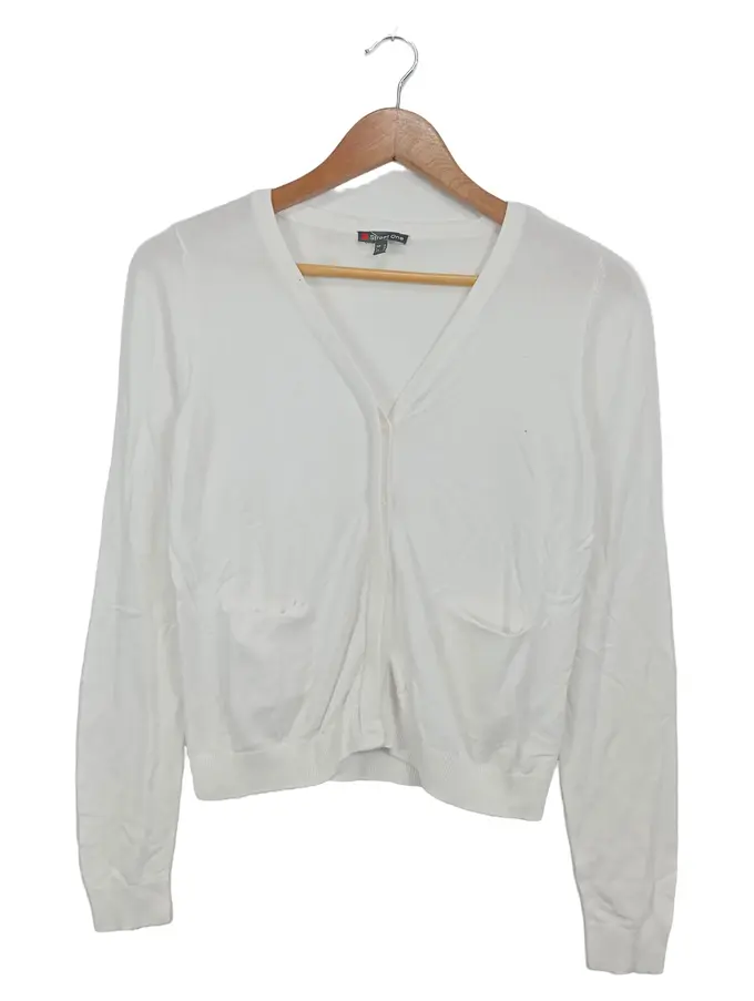 Strickjacke Damen Gr. 36/S Weiß Viskose Polyamid Basic Cardigan