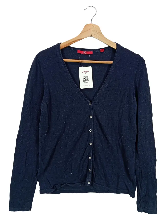 Strickjacke Damen Gr. 38/M Blau Klassisch Elegant V-Ausschnitt