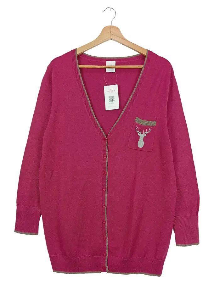 Strickjacke Damen Gr. 44/46 Rosa Schurwolle Klassisch Elegant