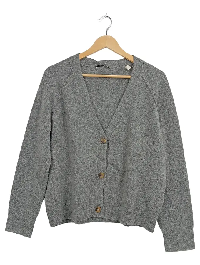 Strickjacke Damen Gr. S Grau V-Ausschnitt Casual Cardigan