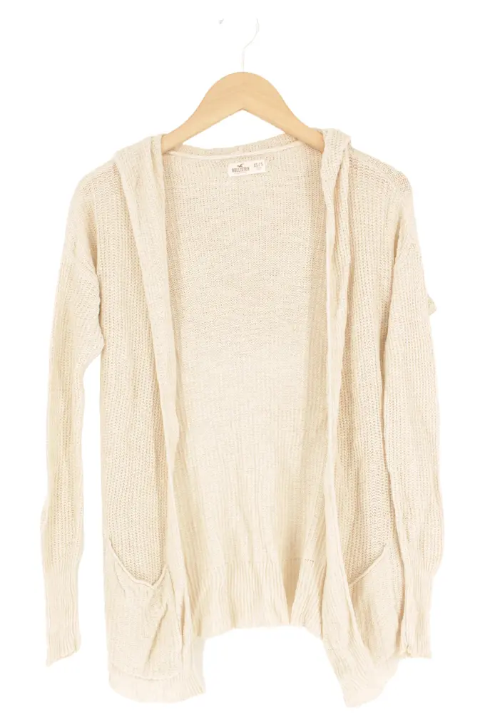 Strickjacke Damen Kapuze Beige Gr. S Casual Vintage
