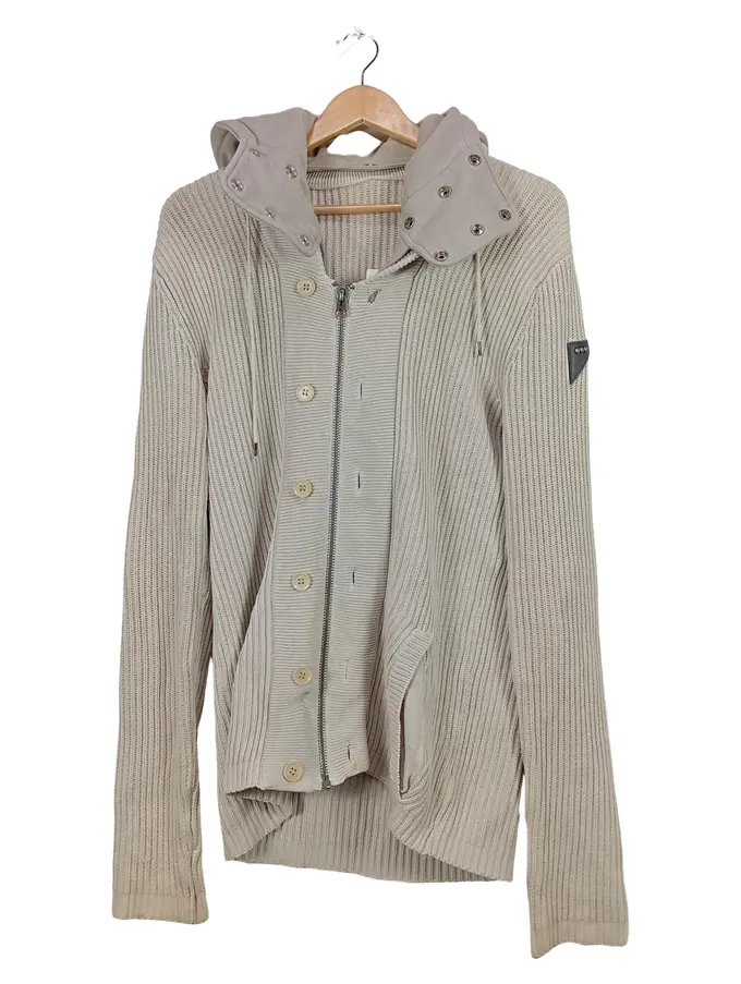 Strickjacke Herren L Kapuze Reißverschluss Beige Baumwolle