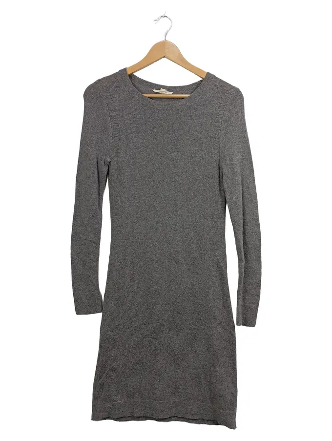 Strickkleid Damen Wolle Midikleid Rippstrick Grau Gr. 34/XS