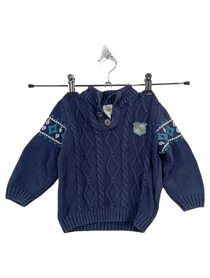 Strickpullover Jungen Gr. 74 Blau Zopfstrick Norweger Pullover Winter