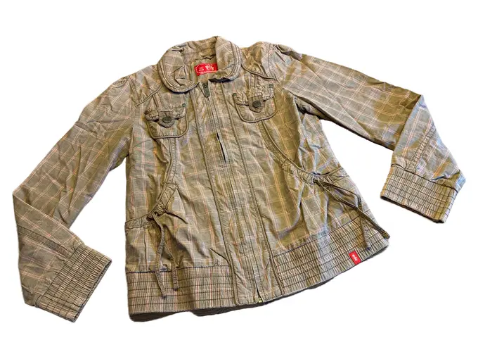 Sweatjacke Damen Kariert Baumwolle Beige Gr. M