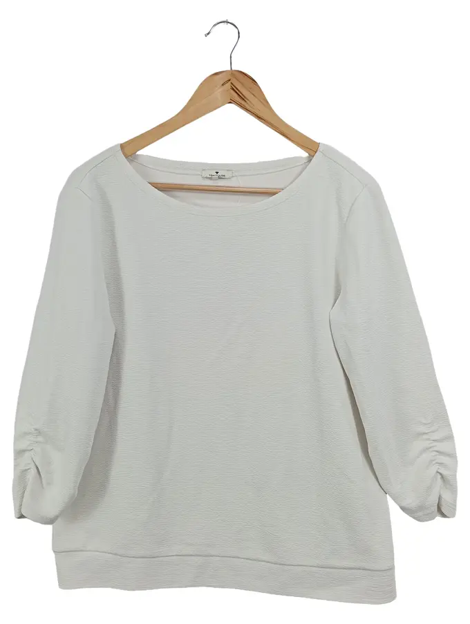 Sweatshirt Damen 3/4-Arm Strukturmuster Weiß Gr. 42 XL