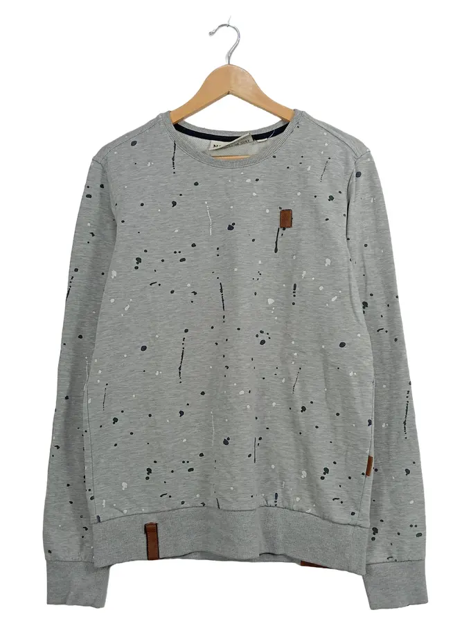Sweatshirt Herren Gr. L Grau Farbspritzer Pullover Baumwolle