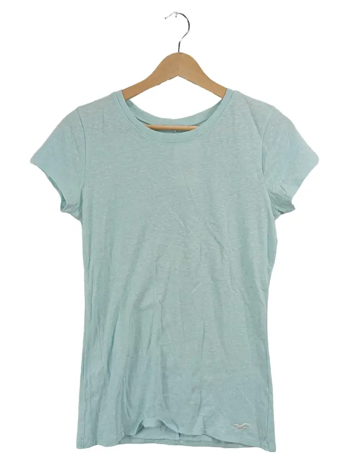 T-Shirt Damen Kurzarm Baumwolle Basic Türkis Gr. M