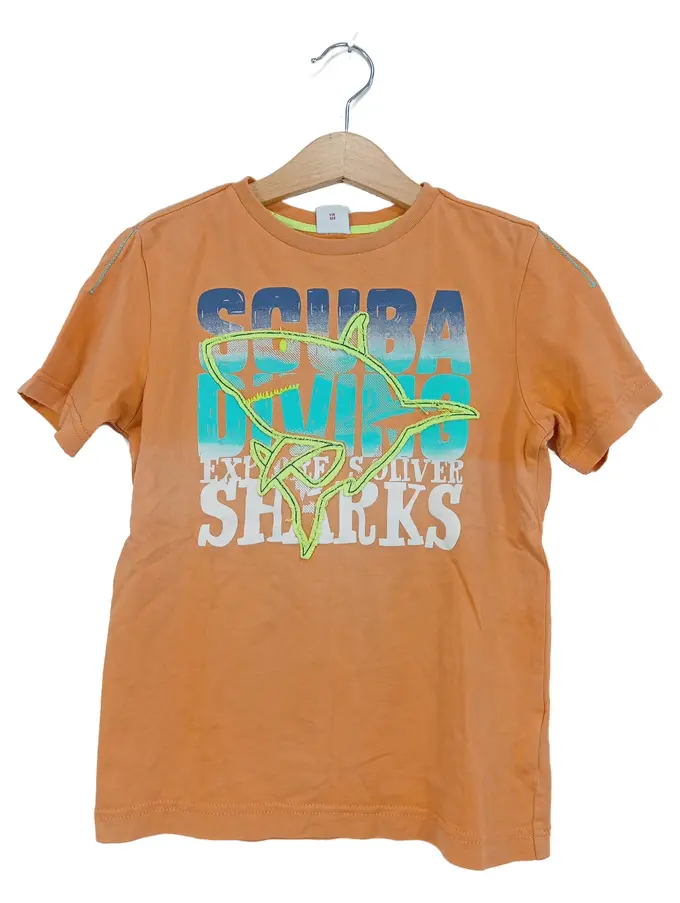 T-Shirt Jungen Kinder Orange Gr. 116/122 Tauchen Haie Casual