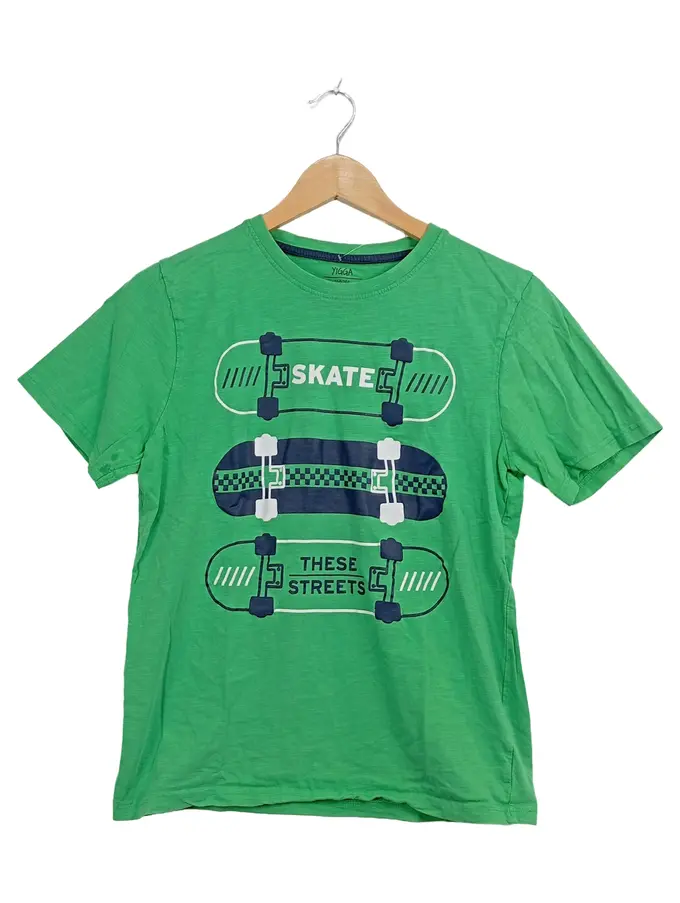 T-Shirt Kinder Jungen Kurzarm Baumwolle Grafisch Schriftzug Grün Gr. 158