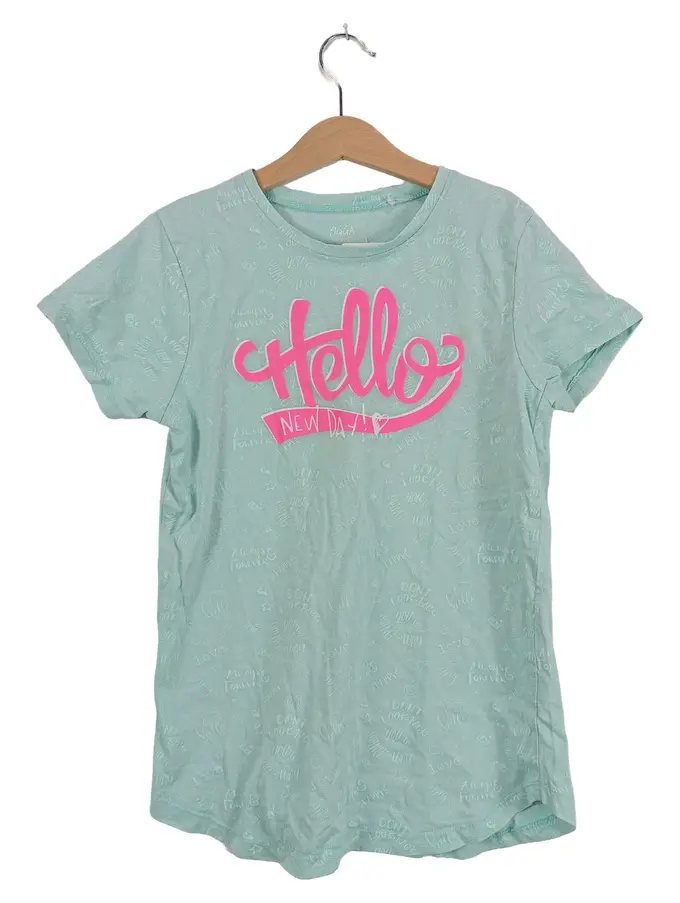 T-Shirt Mädchen Schriftzug Kurzarm Türkis Gr. 146 Baumwolle Freizeit