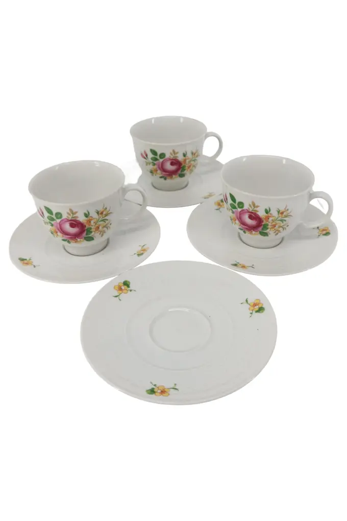 Tasse Unterteller Set 7tlg Weiß Blumen Keramik Klassisch Alltag