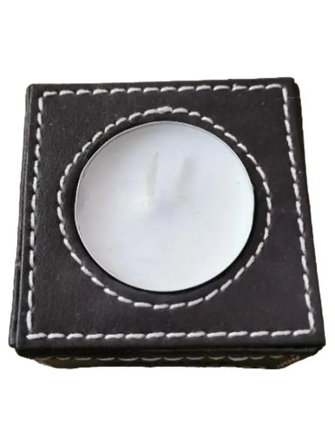 Teelichthalter Leder quadratisch Modern Schwarz 7.5cm Breite