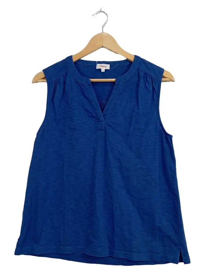 Top Damen Ärmellos Baumwolle Blau Gr. 38 M Uni Casual Sommer Shirt