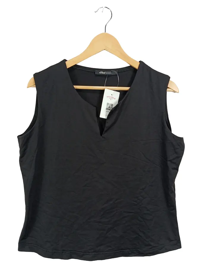 Top Damen Gr. 44 Schwarz Basic Ärmellos V-Ausschnitt