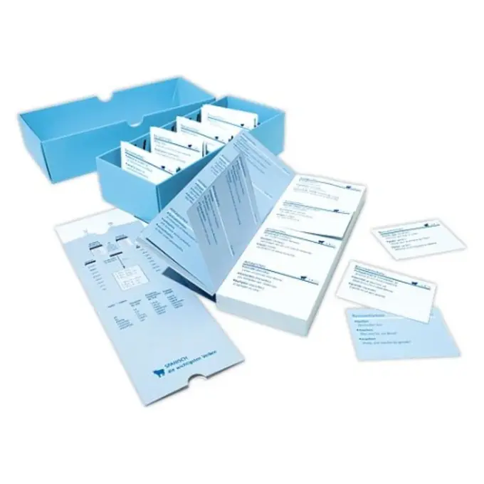 Dieses Kartenspiel von Tschibo dient dem Erlernen und Festigen spanischer Verben. Es enthält Karten mit wichtigen Verben, deren Konjugationen und Anwendungsbeispielen. Ideal für Sprachschüler und alle, die ihre Spanischkenntnisse verbessern möchten. Die Karten sind übersichtlich gestaltet und ermöglichen ein effektives Training der spanischen Grammatik und des Wortschatzes.