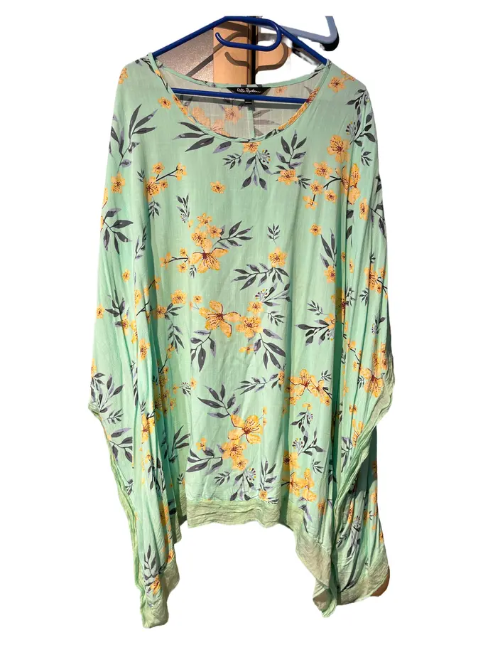 Tunikakleid Damen Gr. 56/5XL Grün Floral Freizeit Viskose