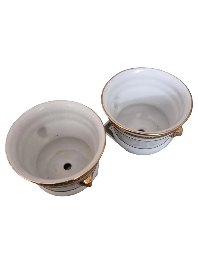 Übertopf Porzellan Weiß Gestreift Klassisch
