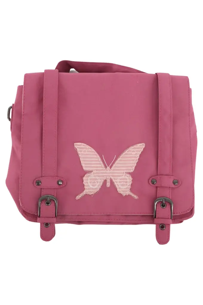 Umhängetasche Damen Rosa Schmetterling Applikation Stoff Casual