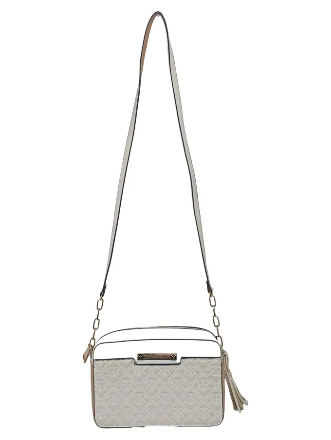 Umhängetasche Damen Weiß Elegant Luxuriös Gesteppt Logo 25x16cm
