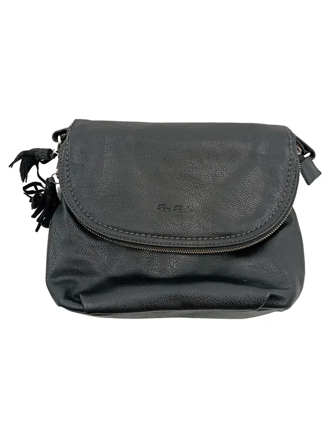Umhängetasche Schwarz Damen Leder Crossbody Tasche mit Quaste