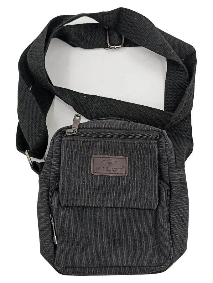 Umhängetasche Schwarz Herren Schultertasche Stoff Casual