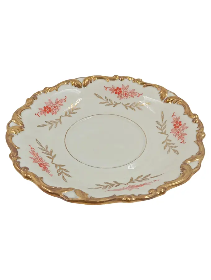 Unterteller Porzellan Weiß Blumenmuster Goldrand 16 cm