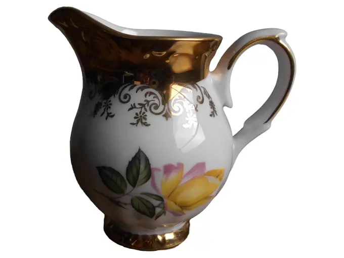 Vase Kännchen Rose Blumenmuster Weiß Gold 12cm