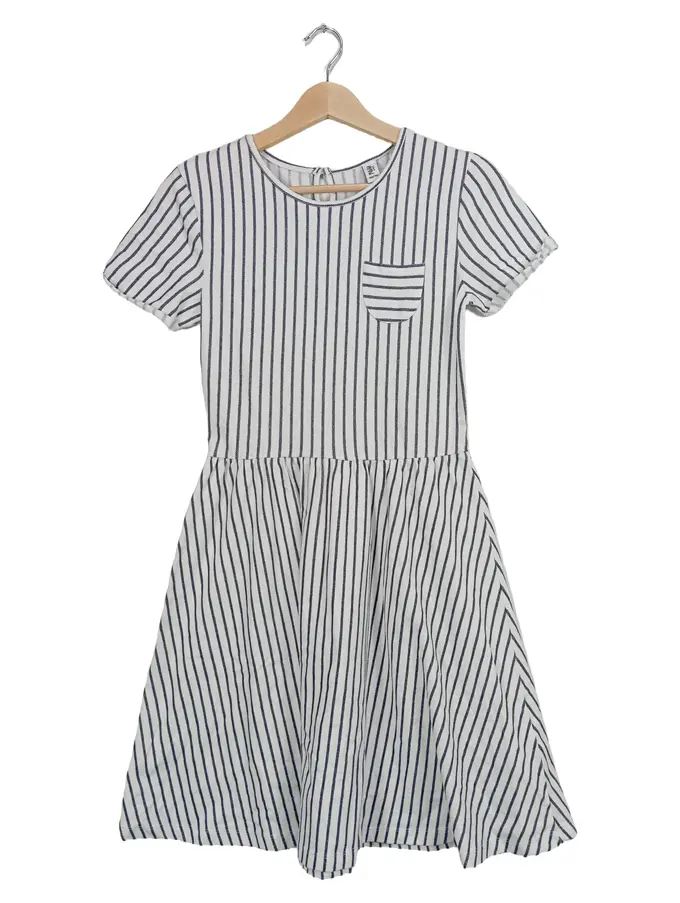 VIGGA Mädchen Kleid Gr. 146-152 Weiß Blau Gestreift Baumwolle Sommer Casual