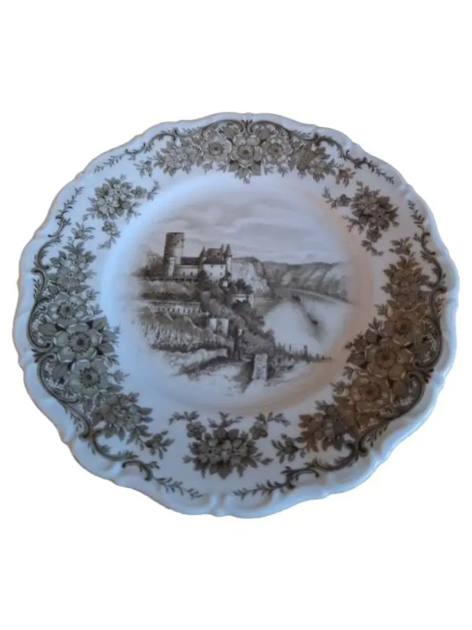 Wandteller Burgmotiv Rheinlandschaft Porzellan 19cm Braun