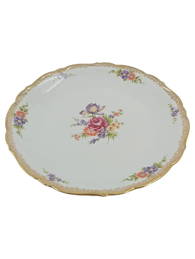 Wandteller Sammelteller Blumenmuster Goldrand Porzellan 26 cm Weiß