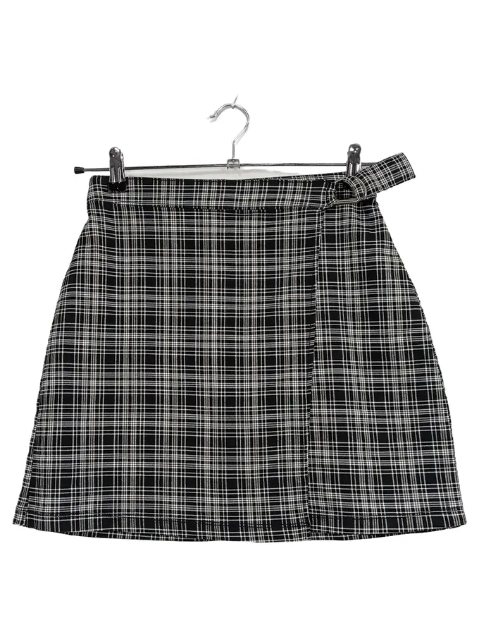 Wickelrock Damen Gr. S Kariert Schwarz Weiß Ultra High-Rise Mini