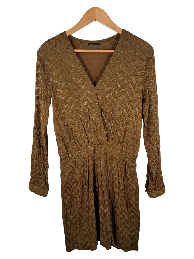 Women Damen Kleid Gr. 36 S Braun Elegant Langarm Festlich