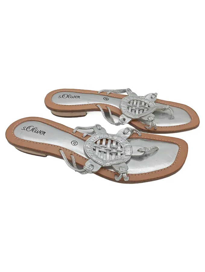 Zehentrenner Damen Gr. 37 Silber Leder Freizeit Feminin